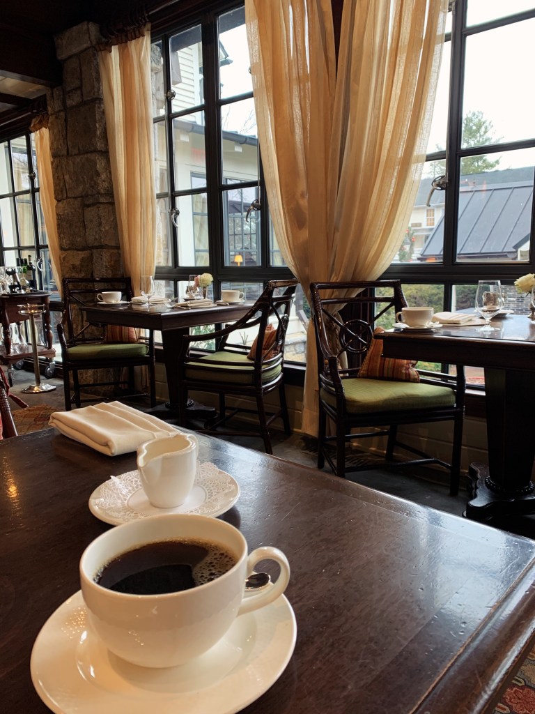 The best part of Old Edward’s is how relaxing and peaceful it is. We slept in until around 9 am, and made our way back to Madison’s for a nice breakfast. You don’t have to worry about making breakfast reservations here because it is only open to hotel guests during morning hours! The breakfast was delicious and the restaurant is so pretty that we enjoyed sitting in this spot with our coffees for a good while. We stopped in the Hummingbird Lounge, which is above Madison’s and beside the spa, to peek around after breakfast! It is a gorgeous great room where they serve cocktails and light fare in the afternoon.